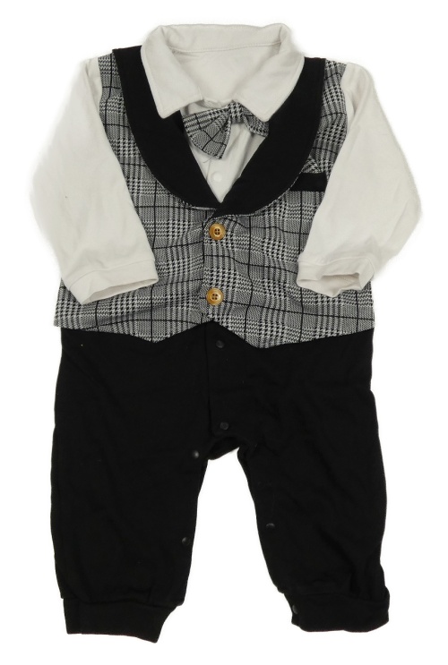 Bielo-čierny overal s našitou kostkovanou sukní a motýlkom shein