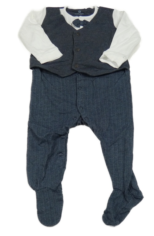 Tmavomodrý overal s našitou vestou a motýlkom Next