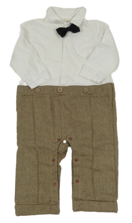 Hnědo/béžovo-biely vzorovaný vlněno/bavlněný slávnostný overal s motýlkom a golierikom ZOEREA