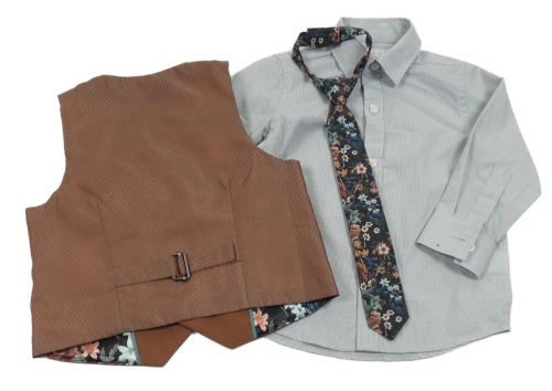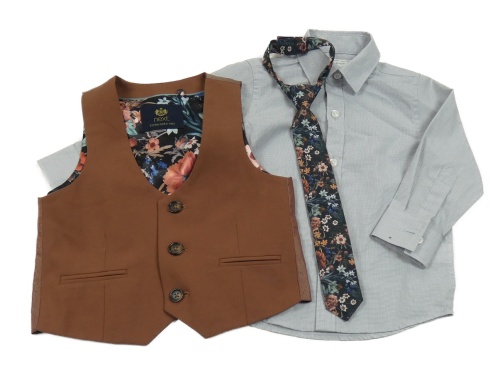 3 set - šedá vzorovaná košile + hnědá vesta + kravata Next