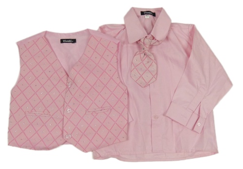3set - Ružová košile + kravata + ružová vzorovaná vesta