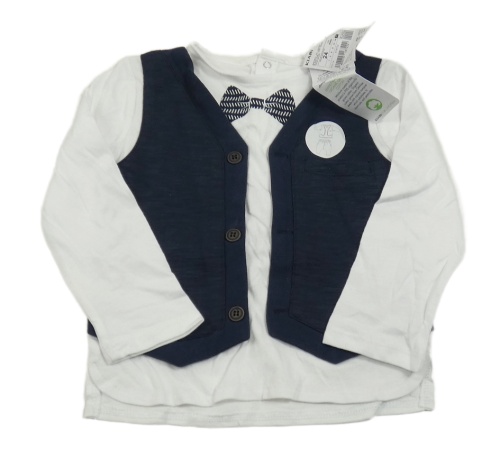 Nové - biele tričko s tmavomodrou našitou vestou kiabi