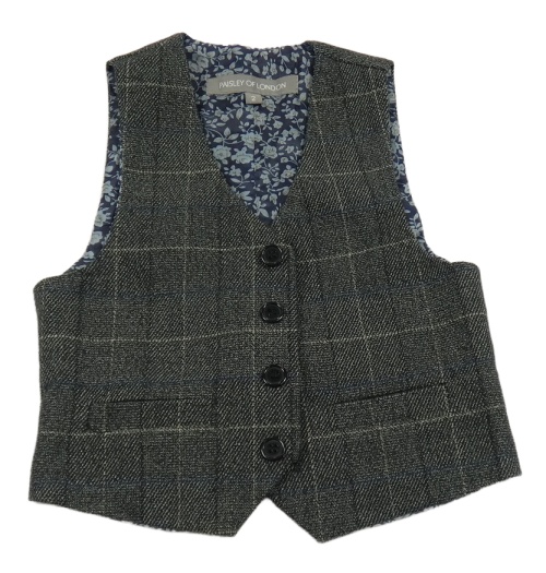 Sivo-modrá kockovaná slávnostná vesta Paisley of London
