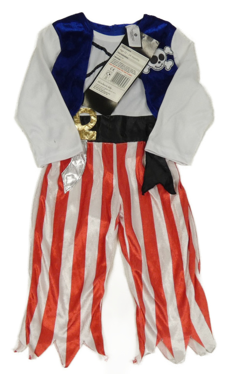 Nové - Kockovaným - Bielo-tmavomodro-červený overal s lebkou - pirát