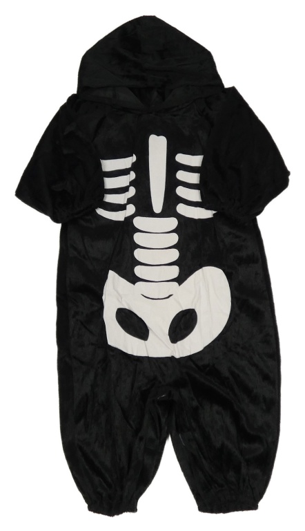 Kockovaným - Čierno-biela chlpatá kombinéza s kostlivcem a kapucňou