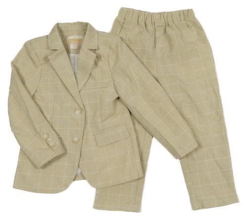 2set - Béžovo-biele kockované slávnostné sako + nohavice