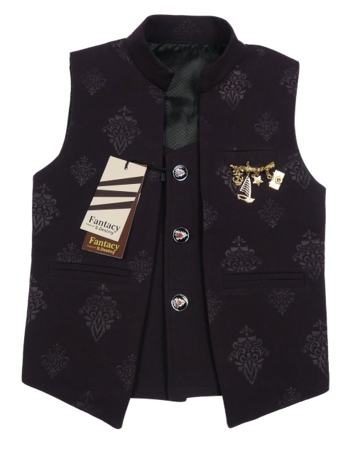Nové - Fialová vzorovaná spoločenská vesta s broži