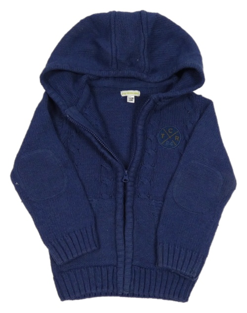 Tmavomodrý vzorovaný prepínaci vlnený sveter s kapucňou Vertbaudet