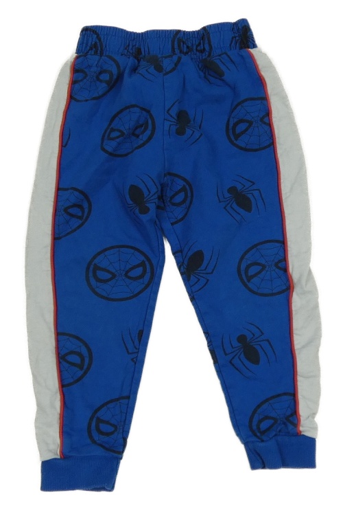 Modré vzorované tepláky so Spidermanem a pruhom