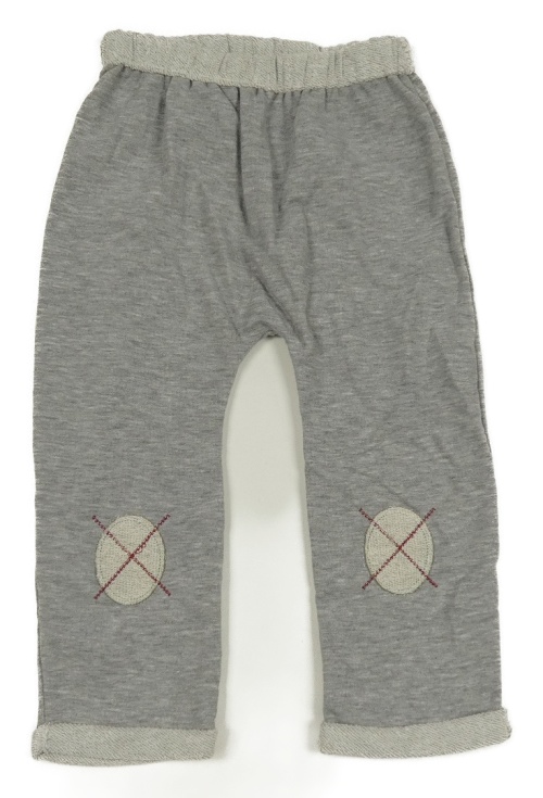 Sivé melírované baggy tepláky s nášivkami na kolenou