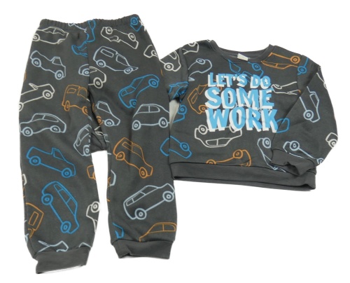2Set - Tmavosivá tepláková mikina s nápismi a auty + tepláky
