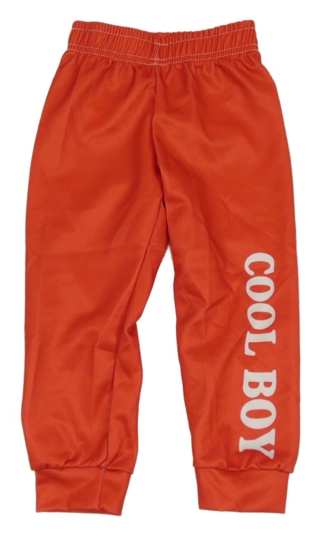 Červené tepláky s nápisom