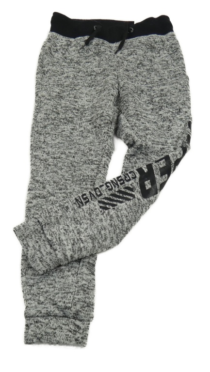 Čierno-biele melírované úpletové nohavice s nápisom Dopodopo