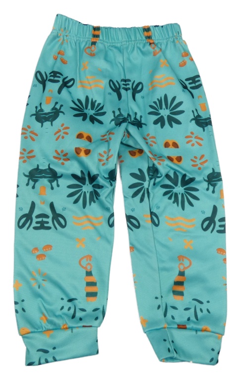 Modré vzorované tepláky s nápismi