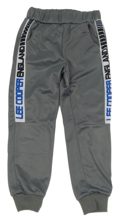 Sivé športové tepláky s pruhom a nápismi