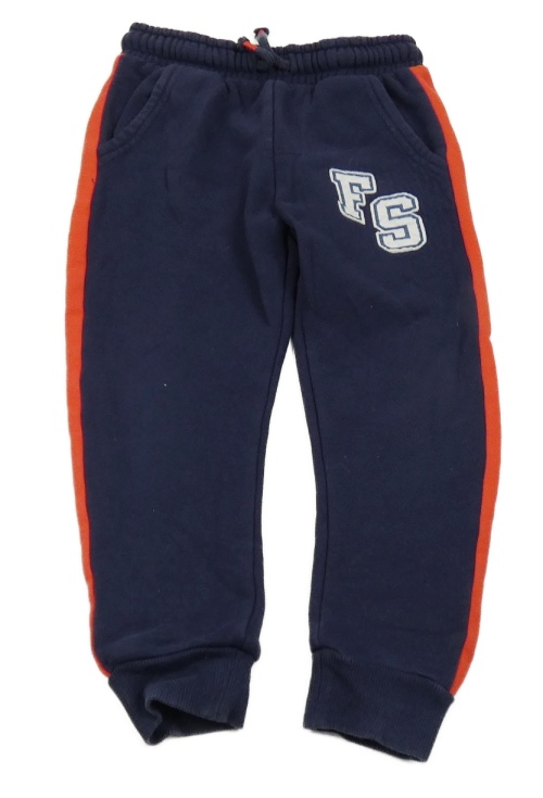 Tmavomodré tepláky s červeným pruhom a písmeny
