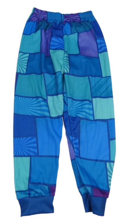 Modro-tyrkysovo-fialové kockované ľahké športové nohavice
