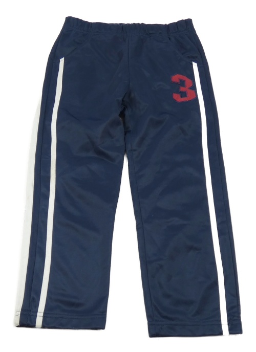 Tmavomodré športové tepláky s pruhom a číslom