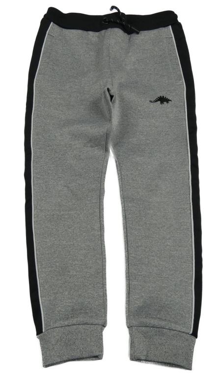 Sivo-čierne melírované tech fleece tepláky s dinosaurom a pruhmi PEP&CO