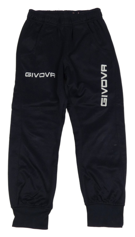 Tmavomodré športové tepláky s nápisom
