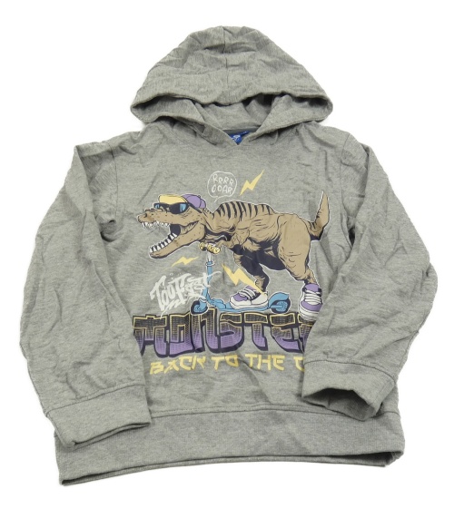Sivá melírovaná mikina s dinosaurom a kapucňou