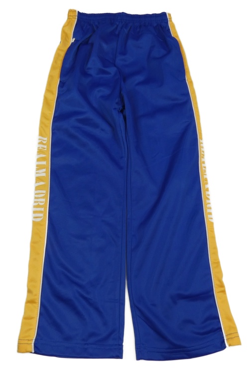 Safírovo-horčicové športové tepláky s nápismi a pruhmi
