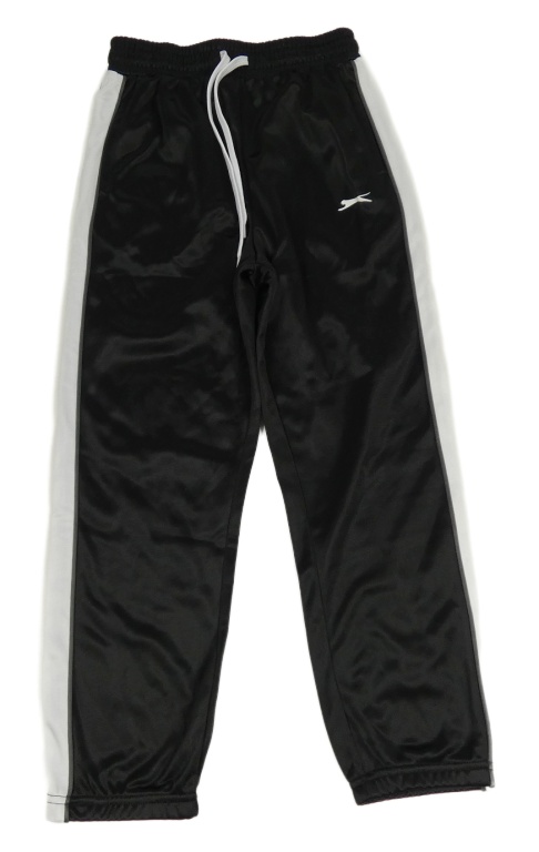 Čierne športové tepláky s bielým pruhom a logom Slazenger