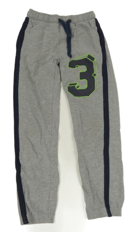 Sivé tepláky s tmavomodrým pruhom a číslom
