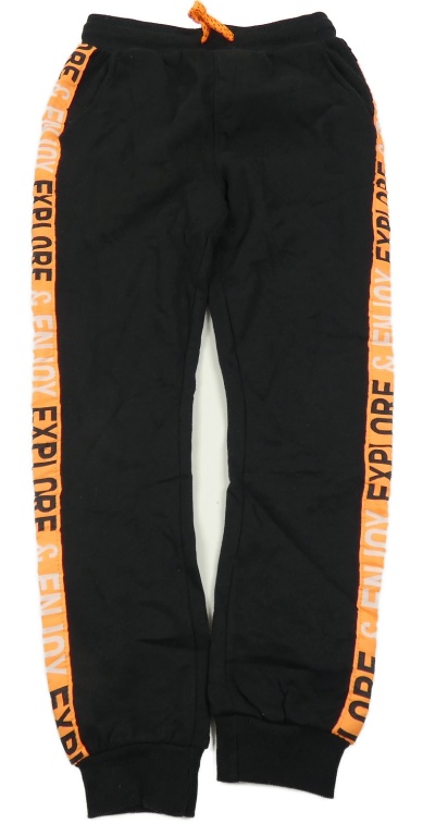 Čierne tepláky s kriklavoě oranžovým pruhom s nápismi Y.F.K.