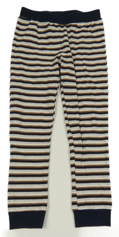Tmavomodro-sivo-hnedé pruhované tepláky