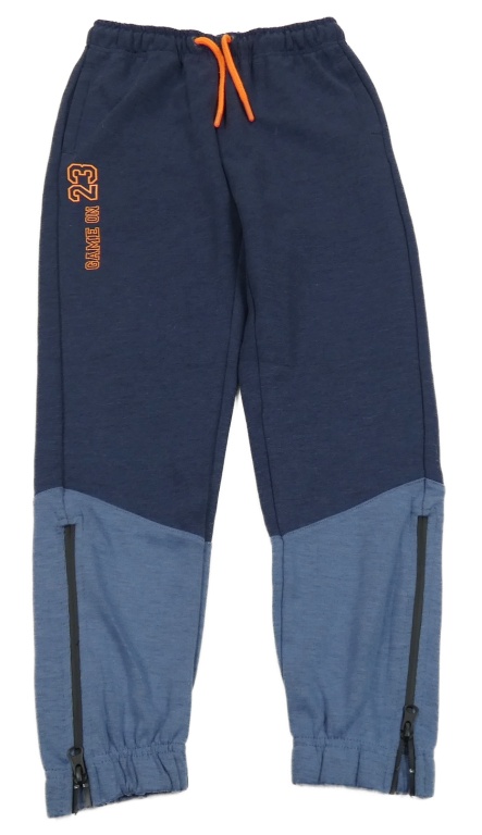 Tmavomodro-modré melírované tepláky s číslom a nápisom Vertbaudet