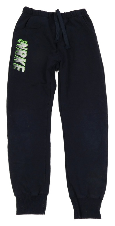 Tmavomodré tepláky s nápisom