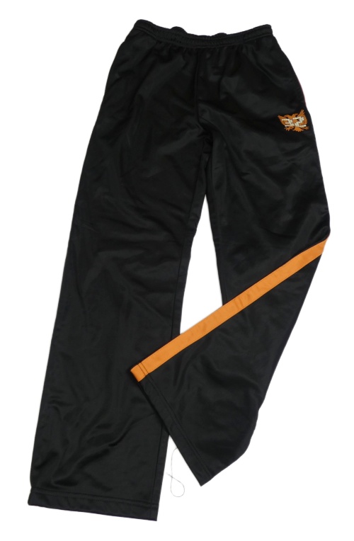 Čierne športové tepláky s oranžovým pruhom