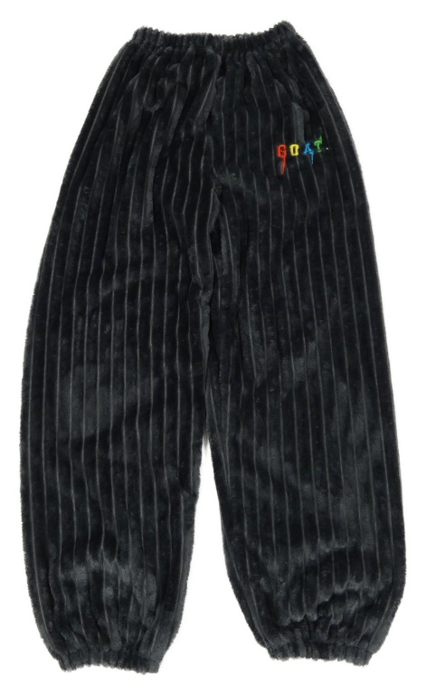 Tmavosivé chlpaté rebrované domáceé nohavice s nápisom