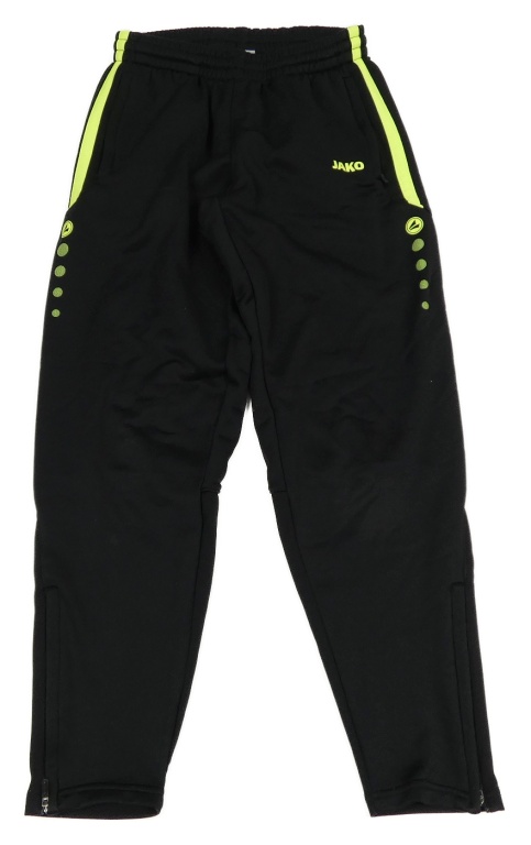 Čierne športové tepláky s logom a neónově žltým pruhom JAKO