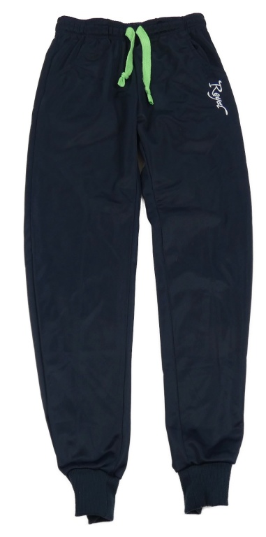 Tmavomodré športové tepláky s nápisom