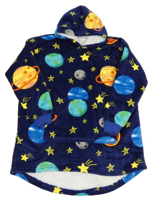Tmavomodrá chlpatá zateplená oversize mikina s vesmírom a kapucňou