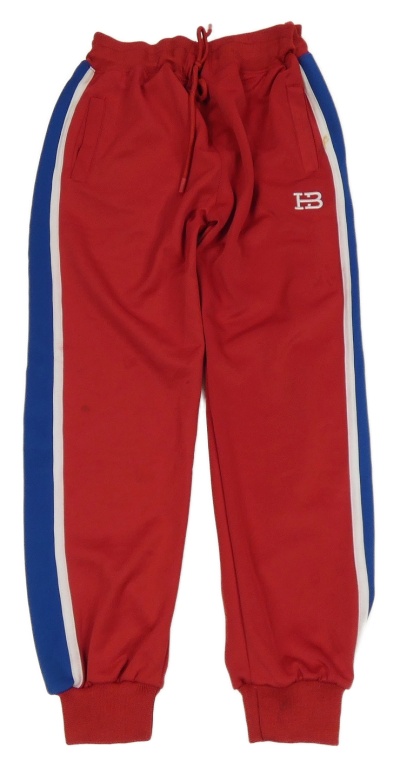 Červené športové tepláky s modrým pruhom