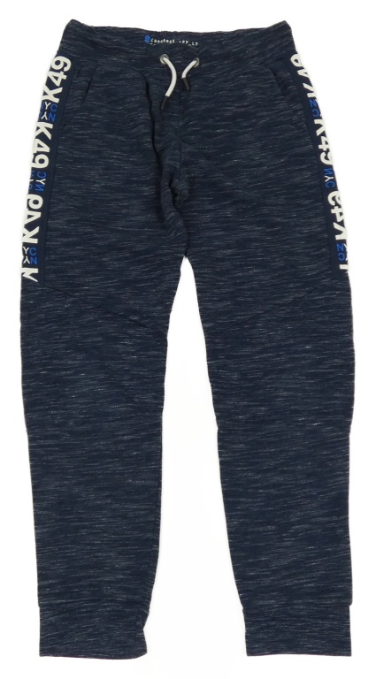 Tmavomodré melírované tepláky s číslami a písmenky alive