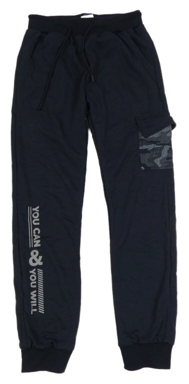 Tmavomodré tepláky s nápisom a vreckami
