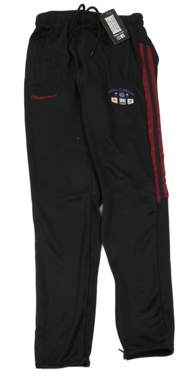 Nové - čierne športové tepláky s vínovým pruhom a výšivkou