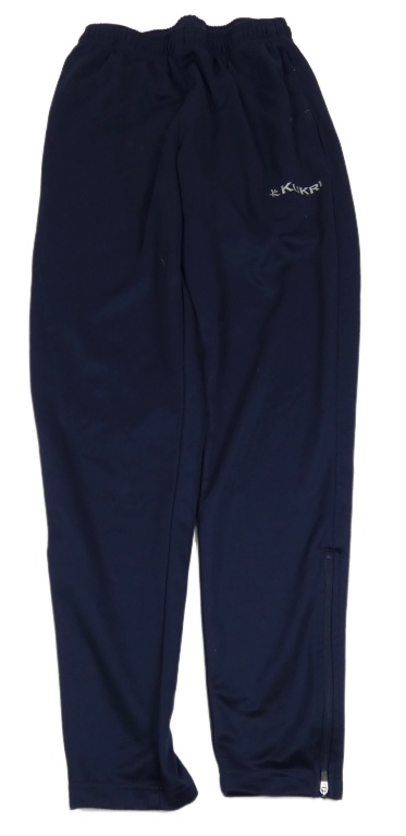 Tmavomodré športové tepláky s nápisom