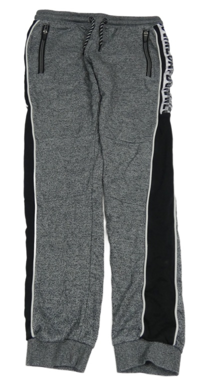 Sivo-čierne melírované tepláky s pruhmi a nápismi C&A