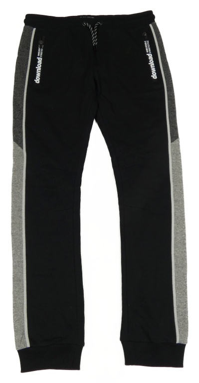 Čierno-sivé tepláky s pruhmi a nápisom C&A