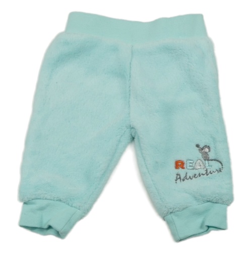 Svetlomodré plyšové tepláky s nápisom a myškou Ergee