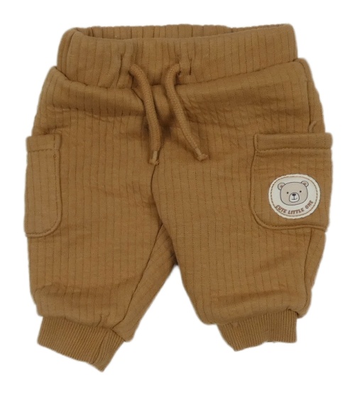 Hnedé rebrované tepláky s vreckami a medvěďom Dopodopo
