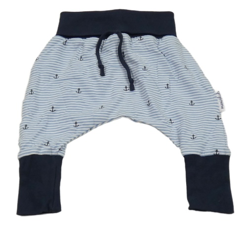 Modro-bielo-tmavomodré pruhované turecké tepláky s kotvami