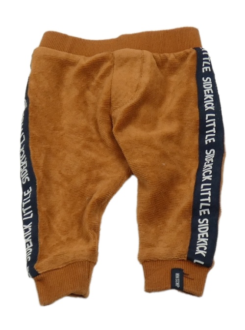 Hnedé rebrované zamatové tepláky s pruhom s nápismi