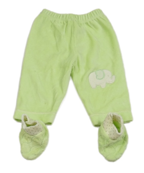2 set - zelené zamatové tepláky so slonem + zamatové cápačky