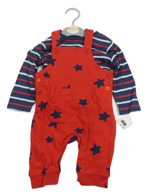 Nové - 2Set - Červené na traké tepláky s hviezdičkami a kapsou + tmavomodro/červeno/bílé pruhované tričko St. Bernard